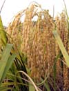 ▲稲穂が色付き、穂を垂れています。しっかりと実の詰まったお米の証。あとは刈り取りを待つばかり…